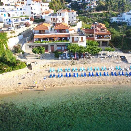 Ostria provides air-conditioned rooms in Patitiri. This beachfront property offers access to a terrace, free private parking, and free Wifi. Every room has a balcony with views of the sea. At the guest house, every unit has a wardrobe, a flat-screen TV, a private bathroom, bed linen, and towels. A fridge and kettle are also provided. Popular points of interest near the guest house include Rousoum Gialos Beach, National Marine Park of Alonissos, and Alonissos Port. Skiathos Airport is 35 miles away.