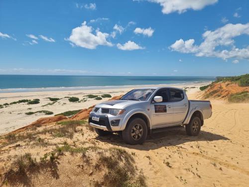 The Pousada Jeribá is located on a beach in Jericoacoara National Park. It has an outdoor pool, and offers air-conditioned rooms with balconies and views of the Atlantic Ocean. WiFi is free in public areas. Rooms at the Jeribá have brick walls and modern furnishings. They come equipped with a mini-bar, and have LCD TVs with satellite channels. The balconies have hammocks. Guests of the Pousada can enjoy a buffet breakfast on the open-air terrace. The hotel has a restaurant that serves regional cuisine, and a bar. In the afternoons, the property offers tea as a courtesy. Pousada Jeribá is 300 quilometres from Fortaleza, and 328 feet from Por do Sol Dune. The hotel offers laundry services.
