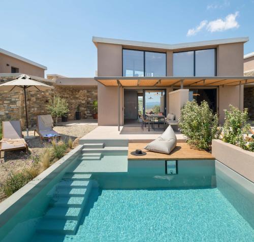 - "The location is ideal (on a hill, surrounded by olive fields) for people who want to be away from tourists, traffic, noise and overall enjoy a solitary and peaceful stay. Highly recommend for couples. The parking was free and easy to get in and out of. The houses are quaint, clean, roomy and modern. There are kitchen facilities. The bathrooms are spacious. The accommodations are newly built, we liked the open design very much and there are patios where you can have your breakfast. The manager, Yannis, was great. He went above and beyond for the requests we had. He gave us good advice on places and beaches to visit. The staff is very professional, polite, fast and hard-working. The food at the restaurant is fantastic. We tried different things on the menu and we liked everything we tasted. Cocktails are great too! The breakfast choices were plentiful and very delicious - there also are options for special requests. Lots of the ingredients that are part of the menu are home-grown within the premises. The pool is long enough to have a decent swim and has a great view of the sea and nearby village. The nearby beach in Flogita village is 15 minutes away by foot. There are lots of places to grab a bite, there are at least 4-5 convenience stores that sell everything you may need daily."