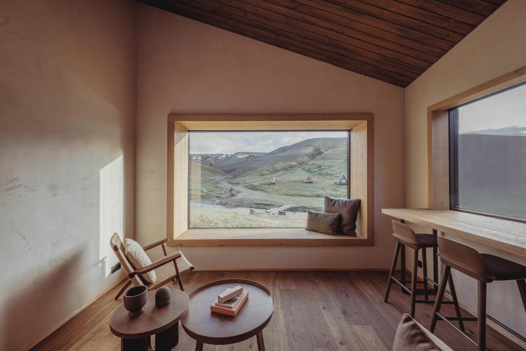 - "Unique location." - "The Highland Base is an absolute gem nestled amidst the breathtaking beauty of the Kerlingarfjöll mountains. From the moment we arrived, we were captivated by the stunning scenery and the serene atmosphere. The hotel itself is a marvel of modern design, seamlessly blending into the natural landscape. Our room was comfortable and stylish, with large windows offering panoramic views of the surrounding wilderness. But what truly elevated our stay from great to exceptional was the incredible service provided by the staff, especially Thomas and Eugenia. Their warm hospitality, genuine helpfulness, and attention to detail made us feel like valued guests throughout our stay. They were always available to answer questions, offer recommendations, and ensure we had everything we needed to enjoy our time at the Highland Base. Whether you're seeking adventure in the highlands or simply a peaceful escape in nature, the Highland Base is an ideal destination. We highly recommend it to anyone looking for a truly unforgettable Icelandic experience."