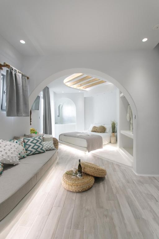 The whitewashed Mr. and Mrs. White is located 2625 feet from Naoussa Town and 0.9 mi from Agioi Anargiroi Beach. Set amid beautiful, landscaped gardens, the 4-start hotel features 2 pools, a poolside snack bar and a restaurant. Free WiFi is provided in public areas. Featuring built-in beds and beamed ceilings, all air-conditioned units open to a furnished balcony or patio. Each includes a TV and fridge, while some also come with a kitchenette with fridge, mini oven and dining area. The on-site restaurant serves American breakfast in buffet style, as well as Greek and Cycladic dishes based on homemade recipes. Guests at Mr. and Mrs. White can enjoy refreshing drinks and light meals at the snack bar, by the pool. Mr. and Mrs. White is 6.2 mi from Parikia Port and 16 mi from Paros Airport. Free parking is possible on site, while concierge services are also available.