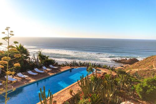 Perched atop a cliff overlooking the beach and Atlantic Ocean, Kasbah Tabelkoukt is an ideal base for exploring Morocco’s coastline. Each room has a different theme. Most of the Kasbah’s rooms have a fireplace and terrace; all have a private bathroom. Kasbah Tabelkoukt offers several diversions including a traditional hammam with massage, a fitness center and private access to deserted beaches. Guests are also invited to use the infinity pool that overlooks the Atlantic. The town of Tiznit is 46 miles away.