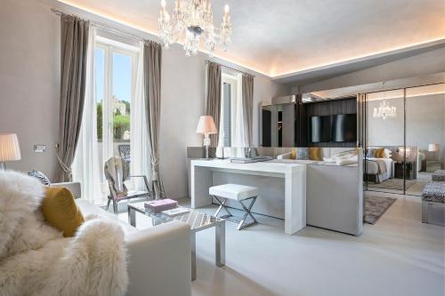 This 5-star boutique hotel is in Rome's historic center an 8-minute walk from the Spanish Steps. It offers a panoramic rooftop terrace, 24-hour personal assistance and room service and elegant rooms with free WiFi. The First Roma is a member of LVX Collection of Preferred Hotels & Resorts. It is a 2-minute walk from Richard Meyer Ara Pacis Museum, a 5-minute walk from Flaminio Metro Station and 2461 feet from the Spanish Steps. Exclusive boutique shops on Via Condotti are 1804 feet from the property. Rooms at The First Roma feature contemporary works of art and modern furniture. Each comes with iPod docks, soft bathrobes, slippers and free toiletries. Some suites boast a terrace with hot tub. Guests can enjoy seafood at the Michelin-starred Acquolina restaurant as well as the rooftop Acquaroof restaurant. A lobby bar and a free fitness area are also available on site.