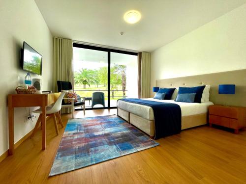 White Exclusive Suites & Villas features an outdoor swimming pool, garden, a terrace and restaurant in Lagoa. With free WiFi, this 5-star hotel offers room service and a concierge service. The property provides airport transportation, while a car rental service is also available. Guest rooms at the hotel come with air conditioning, a seating area, a flat-screen TV with cable channels, a safety deposit box and a private bathroom with a shower, free toiletries and a hairdryer. Each room has a coffee machine, while selected rooms come with a balcony and others also offer sea views. All rooms will provide guests with a fridge. Breakfast is available daily, and includes à la carte, continental and American options. Populo Beach is 1.2 miles from White Exclusive Suites & Villas, while Milicias Beach is 1.6 miles away. The nearest airport is João Paulo II Airport, 8.1 miles from the accommodation.