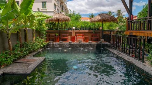 Experience the exhilarating vibe of Siem Reap at this vibrant luxury hotel, where nightlife and activities await just around the corner. With the lively Pub Street and Old Market a short drive away, you'll be immersed in a world of cultural experiences and social hotspots. Enjoy refreshing cocktails at the bar after a day of exploration, or take a dip in the stunning outdoor swimming pool, making every evening an unforgettable adventure.