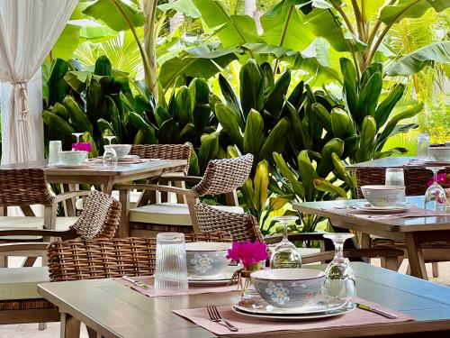 - "+ Everything is made out of bamboo. Not in a cheap way, but in a classy and eco kind of way. It looks super nice! The property is beautifully maintained and is super clean! + They serve breakfast at 08:00, lunch at 13:00 and dinner at 20:00. Everyone eats together in the restaurant that is open to the outsides and is beautifully located next to the beach. All is served in buffet form. They change the menu with every meal and the food is absolutely delicious!! (We booked half-board, but could pay for either buffet or a la carte lunch on the spot) + During our stay we got brand new snorkelling equipment to use for free. + On an information board in the restaurant, you can see what excursion is planned for the next day. The activity depends on the weather. You can opt in or out. We went snorkelling for 25 USD per person. + The staff is super friendly and goes absolutely above and beyond for you to have a good time. + Our speedboat back was scheduled at 13:00, the property gave us a late check-out till 12:00 for free."