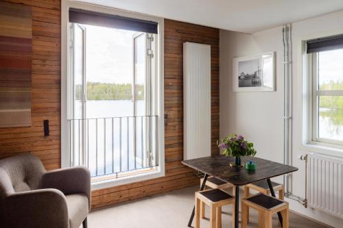 Located in Åsensbruk, 28 miles from Åmål Train Station, Upperud 9:9 has accommodations with a terrace, free private parking, a restaurant and a bar. Guests can enjoy lake views. All rooms at the hotel come with a seating area. Featuring a private bathroom with a shower and free toiletries, rooms at Upperud 9:9 also feature free WiFi, while selected rooms also feature a patio. At the accommodation the rooms include bed linen and towels. A buffet, continental or gluten-free breakfast is served at the property. The area is popular for hiking and cycling, and bike rental is available at Upperud 9:9. The nearest airport is Trollhattan Airport, 45 miles from the hotel.