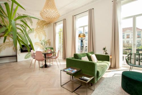 Residenz Stadslogement is a boutique hotel in a restored house from 1896, located in the heart of the Duinoord area of The Hague. It features spacious suites and apartments with luxurious décor. Services such as a 24-hour front desk and a breakfast in room are provided at the Residenz. Guests can rent bikes and book tickets for local attractions. There is also a library. All rooms have heating and light-reducing curtains, featuring a flat-screen TV and a private bathroom with a shower, hairdryer and free toiletries. Business and Deluxe suites also include bathrobes, velvet slippers and a bottle of mineral water.
