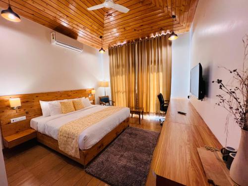 Evara Spa & Resort has a garden, terrace, a restaurant and bar in Rāmnagar. With free WiFi, this 4-star resort offers a 24-hour front desk and a concierge service. The resort has an outdoor swimming pool, fitness center, karaoke and room service. The resort will provide guests with air-conditioned rooms with a desk, a coffee machine, a fridge, a safety deposit box, a flat-screen TV, a balcony and a private bathroom with a bidet. Evara Spa & Resort provides certain accommodations with mountain views, and each room is equipped with an electric tea pot. At the accommodation rooms include bed linen and towels. Guests at Evara Spa & Resort can enjoy a continental breakfast. The resort has a playground. You can play table tennis at Evara Spa & Resort, and car rental is available. The nearest airport is Pantnagar, 51 miles from the accommodation, and the property offers a paid airport shuttle service.