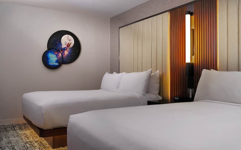 Roll-in shower width (centimeters) - 76, Hydromassage showerhead, Square feet - 446, Roll-in shower width (inches) - 30, Minibar, Wheelchair-width doorways, Shower only, Pets not allowed, Ping - 13, Doorway wheelchair width (centimeters) - 91, Wheelchair accessible, Lowered locks/deadbolt, Lowered peephole/view port in door, Desk chair, Square meters - 41, Desk, Doorway wheelchair width (inches) - 36, Roll-in shower, Bed count minimum 2, Bed count maximum 2