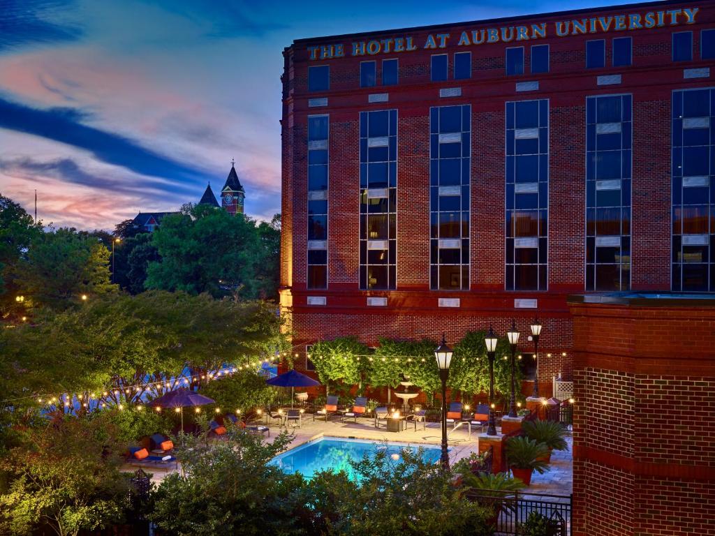 Located on the campus of Auburn University, this hotel offers an outdoor pool, a restaurant and a lounge with live jazz music on the weekends. Every room features a 32-inch flat-screen cable TV. A microwave, fridge, and coffee-making facilities are provided in The Hotel at Auburn University's contemporary rooms. They have free WiFi and MP3 player plug-ins. The bathroom includes a rainfall shower and robes. Auburn University Hotel guests can enjoy a daily breakfast buffet. Ariccia Cucina serves seasonal Italian specialties and offers a terrace. Piccolo serves appetizers, desserts and specialty cocktails. The Jule Collins Smith Museum of Fine Art is just 1 mi from Hotel Auburn University. Auburn Links at Mill Creek is 6.4 miles away.