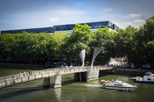 On the quayside of the Floating Harbor, The Bristol Hotel is 10 minutes' walk from Brunel's SS Great Britain. It has stylish rooms, free internet and a riverside restaurant. The light and airy rooms feature modern furniture and many have views across the harbor. They feature a flat-screen TV and beds have duck down duvets and crisp white linen. Bathrooms include power shower and designer toiletries. With huge floor-to-ceiling windows offering stunning river views, the River Grille restaurant serves modern English cuisine including fresh local fish, Somerset beef and West Country cheeses. The elegant River Lounge offers light snacks, afternoon teas and a fine wine list. Guests can also visit Rick's, a glamorous cocktail bar which transports guests to a relaxed and exotic destination. Queens Square and the Arnolfini Gallery are both just 656 feet away. Castle Park and The Galleries shopping center are 10 minutes’ walk.
