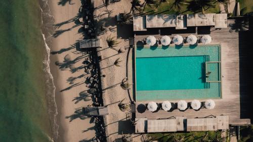Escape to tranquility at Casa de Areia, where direct access to a stunning private beach invites you to unwind on soft, golden sand. This serene boutique hotel offers an exclusive beachfront experience, complete with parasols and sun loungers for your comfort. Enjoy breathtaking ocean views from your stylishly decorated room or simply relax in a hammock while the waves serenade you. Embrace the elite atmosphere of Jericoacoara, far from the crowds, and indulge in ultimate relaxation.