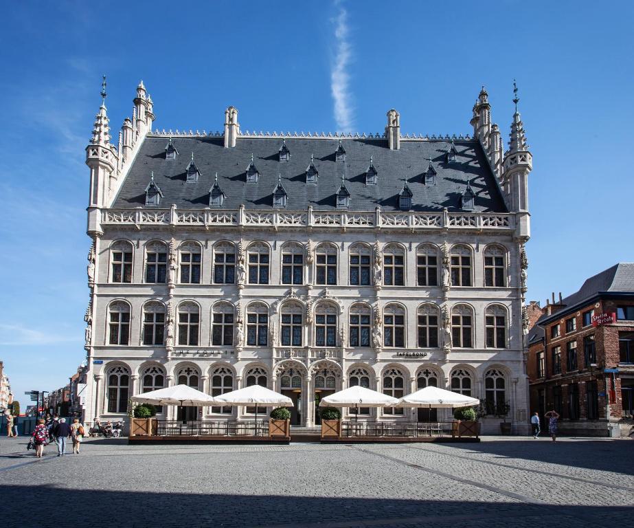 Hotel Damier dates from 1769 and features an elegant historic façade with De Coene interior. It is located on the Grote Markt in Kortrijk and features free Wi-Fi. Our private parking, for a surcharge, is only a 2-minute walk from the accommodations" Each of the 65 guest rooms and the luxe apartment of 150 square yards at Hotel Damier Kortrijk feature a flat-screen TV, and a private bathroom. Some of them feature air conditioning. The bathrooms are all equipped with a shower, bath, and a hairdryer. The Executive category rooms have the possibility for connecting doors and can be equipped with disability-friendly facilities. Guests can enjoy a luxurious breakfast buffet with waiter service. The hotel offers 24-hour reception and a lobby with a fireplace. The on-site restaurant serves contemporary international cuisine for lunch and dinner, using high-quality products. The restaurant also has a heated terrace. At brasserie Damier guests can enjoy meals for both lunch and dinner, local beers, a varied whiskey collection, cocktails and 'Copperhead' gin. In the afternoon, guests can enjoy fresh homemade Belgian pancakes and waffles. Guests can also enjoy the property's signature cocktails at the high-end bar Sprezza. The hotel disposes of 2 banquet rooms and 2 meeting rooms. The Kortrijk Xpo halls are only 1 mi away and Kortrijk-Wevelgem International Airport is within 5 mi away. Damier Hotel is a 5-minute walk from Kortrijk Railway Station. Guests can go cycling in the surrounding area and visit the local museums. The parking facilities that the hotel offers are located a 2-minute walk from the hotel.