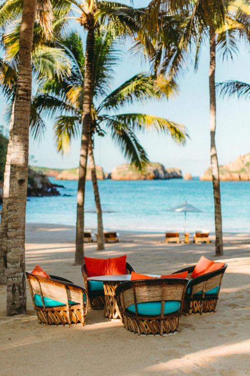 This luxury seafront resort features an 18-yard freshwater swimming pool with relaxing massage jets and 4 private beaches. It is located in Quemaro in the Costalegre region of Jalisco, and offer free private parking. The villas feature tile roofs, shaded terraces and white ceramic floors. Each villa is decorated in jewel-like colors and a mix of Mexican designs, fabrics and crafts. The Oasis Restaurant offers spectacular sea views and serves a wide range of dishes from around the world, including Asian, Mexican and American cuisine. There is also a beach bar. Las Alamandas includes an on-site boutique and a fitness center. It also offers equipment for water sports including snorkeling, surfing and boogie boarding. Younger guests can enjoy one of the programmed activities at the Kids Club on the beach. The resort is 91 mi from Puerto Vallarta Aiport and 73 mi from Manzanillo Airport. A shuttle service is available at an additional cost. There is also an on-site runway for small aircrafts.