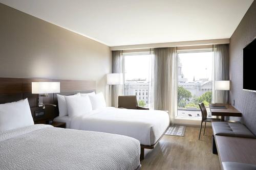 AC Hotel by Marriott Madison Downtown features a fitness center, shared lounge, a terrace and restaurant in Madison. With free WiFi, this 4-star hotel offers a 24-hour front desk and a business center. Guests can use a bar. At the hotel each room is equipped with air conditioning, a seating area, a flat-screen TV with cable channels, a safety deposit box and a private bathroom with a shower, free toiletries and a hairdryer. AC Hotel by Marriott Madison Downtown provides certain rooms with city views, and every room is equipped with a coffee machine. Guest rooms include a desk. An Italian breakfast is available at the accommodation. Popular points of interest near AC Hotel by Marriott Madison Downtown include University of Wisconsin - Madison, Madison Area Technical College and Wisconsin State Capitol Building. Dane County Regional Airport is 4.3 miles away.