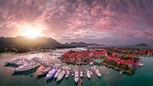 Located alongside the prestige marina of Eden Island and just 3.7 mi away from Seychelles International Airport, Eden Bleu Hotel features an outdoor pool and modern conference and business facilities. The rooms have contemporary décor and are equipped with ceiling fans, air-conditioning, safety deposit box and a flat-screen TV with satellite channels. The modern bathrooms are fitted with a shower, hair dryer and complimentary toiletries. Breakfast and light meals can be enjoyed at Marlin Bleu Restaurant. The restaurant opens up onto a poolside terrace. Cocktails and drinks are offered at the Bourgeois Bar. Eden Bleu Hotel has a 24-hour front desk, a concierge service and state-of-the art conferencing facilities for up to 340 guests. Free WiFi is available throughout the hotel and airport shuttles can be arranged. The hotel is within walking distance to the Eden Plaza retail center and commercial precinct where guests can find a variety of shops, a supermarket, a spa and a casino. Victoria is about 3.1 mi away from the hotel.