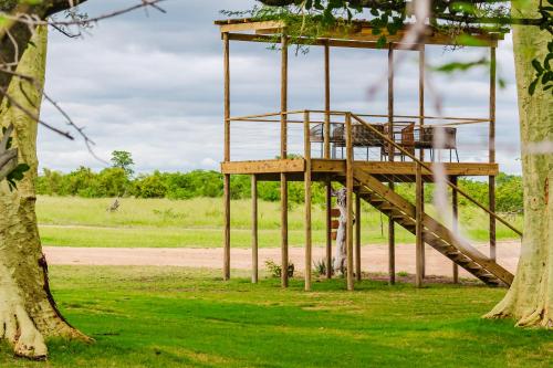 This 5-star luxury tented lodge is surrounded by ancient trees and wildlife in the Kruger National Park. Decorated in Colonial style, its luxury tents feature private verandas overlooking the seasonal river. With beautiful teak floors, the air-conditioned tents of Hamiltons Tented Camp are furnished with pieces that remind of the safaris of the early 20th century. The beds are draped with mosquite nets and the bathrooms feature a free-standing bath. The cuisine includes a wide choice of fresh produce prepared daily. Hamiltons features a refreshing outdoor pool, with sunbeds overlooking the African bush and river, or schedule a relaxing massage. Two daily safaris in an open safari vehicle are included. Birding and guided bush walks can be requested. Skuzkuza Airport is 39 mi away.