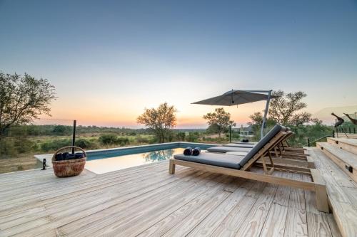 Senalala Safari Lodge is located in Klaserie Private Nature Reserve. The camp overlooks a waterhole and features thatched chalet accommodations, a viewing deck, and outdoor fireplace (or boma). Free WiFi is available. The chalets are equipped with fans and air-conditioning and each one has a private private bathroom fitted with a bath and shower. Extras include complimentary amenities, and a hairdryer. Meals are served on the veranda. Guests can relax with a book in the lounge area or viewing deck. Senalala Safari Lodge specializes in guided walking safaris and also offers game drives. Guests can enjoy other facilities including a fitness center and an outdoor pool. Eastgate Airport is a 60-minute drive away from Lodge.