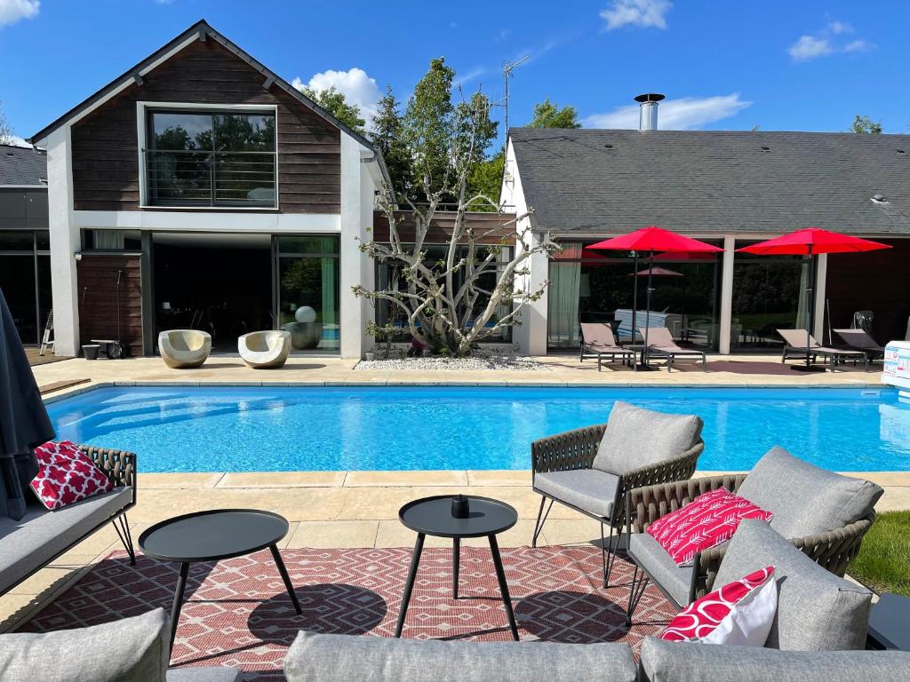 Les Arbres Rouges offers accommodations in Sucé, 9.3 miles from Botanical Garden of Nantes and 11 miles from Castle of the Dukes of Brittany. This property offers a pool with a view and free private parking. Guests can use the beauty services or enjoy garden views. At the bed and breakfast, the units include a desk and a flat-screen TV. Each room includes a coffee machine, a private bathroom, and free Wifi, while some rooms include a terrace and some have pool views. At the bed and breakfast, each unit includes bed linen and towels. Guests at the bed and breakfast can enjoy a continental breakfast, and breakfast in the room is also available. There is an on-site bar. Outdoor play equipment is also available at Les Arbres Rouges, while guests can also relax in the garden. Bouffay Area is 12 miles from the accommodation, while Printing Museum is 12 miles from the property. Nantes Atlantique Airport is 17 miles away.