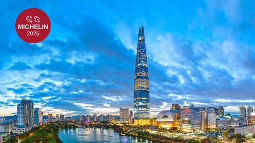 Located between floors 76 and 101 of Lotte World Tower, Signiel Seoul features panoramic views of Seoul in all 235 rooms. This five-star hotel features a champagne bar, Michelin-starred restaurant, indoor swimming pool, fitness center and banquet facilities. It is also directly connected to Jamsil Subway Station (Line 2 and 8) through an underground passage and provides free WiFi access throughout the entire property. All rooms are carpeted and fitted with a mini-bar, fridge, coffee machine, safety deposit box and flat-screen TV. Private bathroom includes a hairdryer, free toiletries, slippers and toilet with an electronic bidet. Staff at Signiel Seoul can assist guests with luggage storage, valet parking and concierge services. Dry cleaning, laundry, trouser press and ironing services are available at a surcharge. Awarded with 1 Michelin star, BICENA provides Korean-style dishes for lunch and dinner. Guests can also enjoy French gourmets at STAY restaurant which is owned by 3-star Michelin chef Yannick Alléno. Signiel Seoul is 4.3 mi from Gangnam Station, while COEX Mall is under a 20-minute drive away. The nearest airport is Gimpo Airport, a 45-minute drive away, while Incheon International Airport is under a 70-minute drive from the hotel.