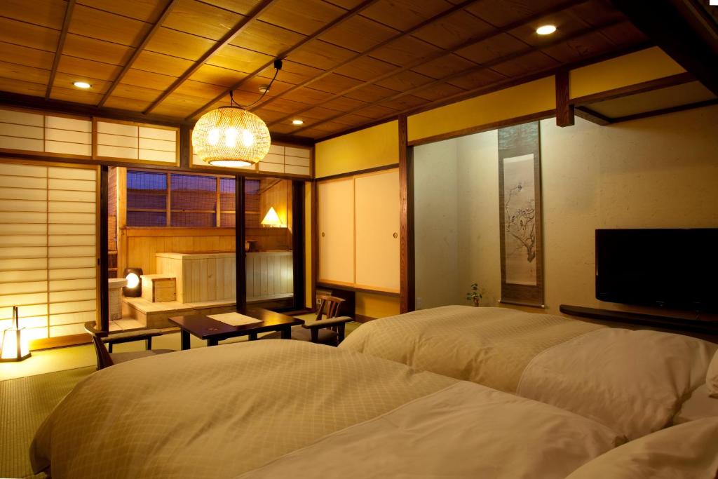 Michelin key awarded. Awarded by TripAdvisor Travelers' Choice in 2015, Wanosato offers luxurious Japanese-style ryokan stay in a 160-year-old quaint Gassho-zukuri thatched-roof house, nestled in the tranquil woods. It features a bedrock and a cypress public hot spring bath, where guests can unwind with mountain views. The property is a 20-minute complimentary shuttle ride from JR Takayama Station. Free WiFi is available in all rooms and lobby area. Fitted with a relaxing ambiance, tatami (woven-straw) flooring and futon bedding, each room comes with a flat-screen TV and a fridge. The private bathroom has a bathtub, free toiletries and a hairdryer. All rooms are nonsmoking rooms and feature a view of the nearby river. Wanosato Ryokan offers a garden and free on-site parking. The free pick-up service from the Takayama Station requires a reservation at least 1 day in advance. A Japanese breakfast and dinner feature a variety of beautifully presented dishes, prepared from seasonal produce. Meals are served at the dining area. The ryokan is a 70-mintue drive to Shirakawago Village, while Takayama's Old Town and its morning market is a 25-minute drive away. Takayama expressway exit is a 20-minute drive from the property.