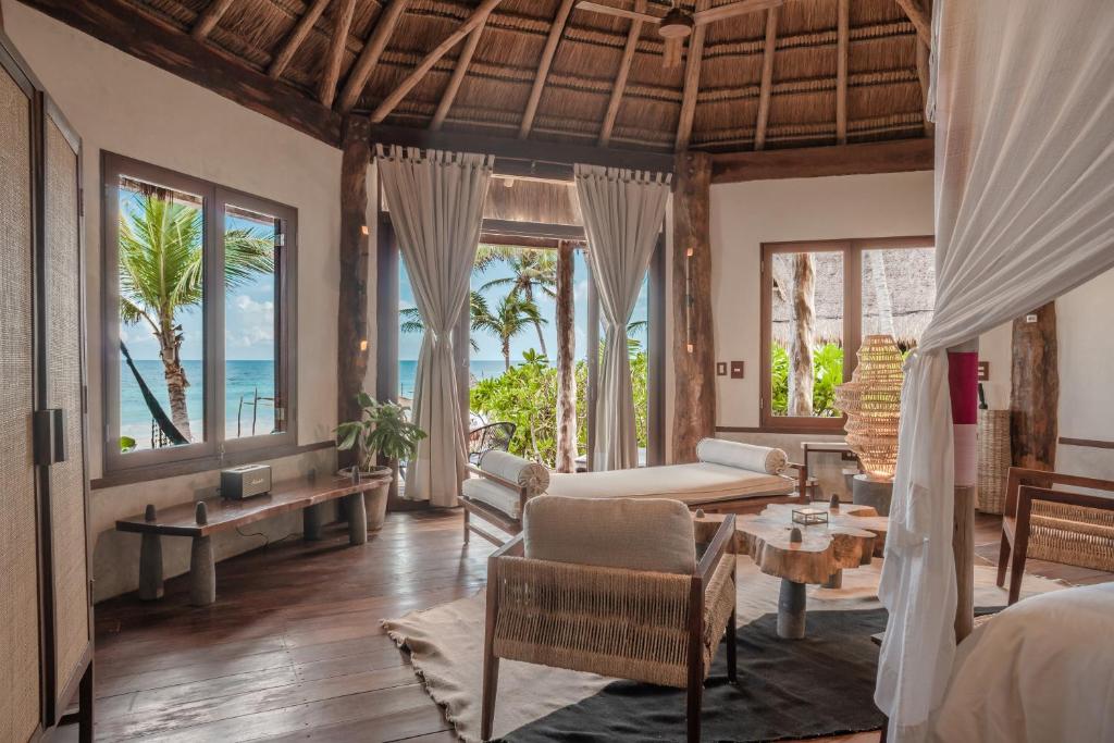 Located in Tulum, a few steps from South Tulum Beach, The Beach Tulum Hotel provides accommodations with an outdoor swimming pool, free private parking, a fitness center and a garden. With a private beach area, the 5-star hotel has air-conditioned rooms with free WiFi, each with a private bathroom. The hotel has sea views, a terrace and a 24-hour front desk. At the hotel, all rooms have a patio. Every room is equipped with a coffee machine, while some have a balcony. Guest rooms include a safety deposit box. Breakfast is available, and includes American, vegetarian and vegan options. At The Beach Tulum Hotel you'll find a restaurant serving Caribbean, Mexican and Local cuisine. Vegetarian, dairy-free and vegan options can also be requested. Spa and wellness facilities including a sauna, a hot tub and a hammam are at guests' disposal during their stay at the accommodation. You can play pool at The Beach Tulum Hotel, and car rental is available. Tulum Archeological Site is 6 miles from the hotel, while Parque Nacional Tulum is 2 miles from the property. Tulum International Airport is 27 miles away, and the property offers a paid airport shuttle service.