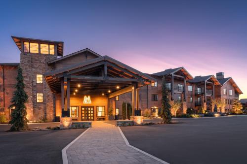 Featuring two on-site restaurants, this Bend resort is located on an 18-hole semi-private golf course. Bordering Deschutes National Forest, Tetherow Hotel offers spacious guest rooms with a sleek, modern design. Additional amenities include a cable flat-screen TV, a microwave, a refrigerator, and a coffee machine. Guests here have easy access to the city center of Bend, thanks to the resort’s complimentary shuttle service. Meeting and banquet facilities, a concierge service, and a 24-hour front desk are all available on site. The on-site fitness center, Tetherow Hotel Sport, offers cardio and weight machines, along with a steam room and sauna. Tetherow Hotel is 3.3 mi from the Old Mill District and 3.7 mi from Bend’s city center. Ski slopes at Mt. Bachelor are just a 20-minute drive away.