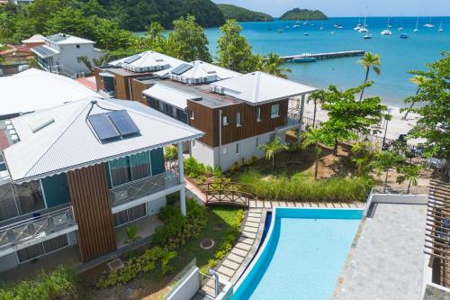 Located in the charming town of Le Francois, this beachfront rental residence features beautiful sandy beaches and a lush tropical environment. Spacious suites boast with a plasma TV. guest can take a refreshing swim in the spacious pool at Les Villas du Lagon. Satellite TV . Bright, tropical colors, exotic woods and hemp fabrics are featured.