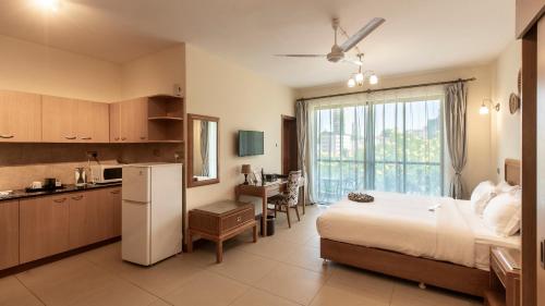 Featuring free WiFi, Lotos Inn & Suites is an all-suite hotel located in Nairobi. Free private parking and 24-hour security is available at the property. The open-plan rooms offer a flat-screen TV with satellite channels. Each room has a fridge, microwave and tea-and-coffee-making facilities. The private bathroom is equipped with a shower. Offering views of the Westlands skyline, Lotos Inn & Suites features a signature rooftop restaurant and lounge, where guests can enjoy authentic Chinese meals and a variety of drinks. Lotos Inn & Suites also has a fully-equipped conference room. You can engage in various activities, such as golfing and hiking. The hotel also offers car hire. Nairobi National Museum is 1.1 mi from Lotos Inn & Suites, while Kenyatta International Conference Center is 2.2 mi from the property. Jomo Kenyatta Airport is 9.3 mi away.