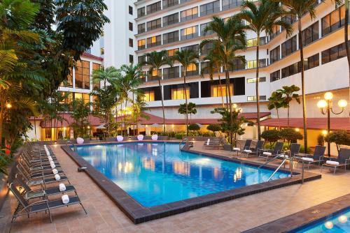 Located next to a historical Hindu Temple, Hilton Garden Inn Singapore Serangoonon offers accommodations in Singapore. It features an outdoor swimming pool and guests can enjoy meals at the in-house restaurant or have a drink at the bar. Free WiFi is available throughout the property. The nearest MRT Station, Little India MRT Station is 1148 feet from the property. It is 1969 feet to the 24-hour Mustafa Center. Kwan Im Thong Hood Cho Temple is 0.7 mi from Hilton Garden Inn Singapore Serangoonon, while Bugis Street is 0.8 mi from the property. Changi Airport is 12 mi away. Shuttle services are not available at the hotel Each room at this hotel is air conditioned and is equipped with a flat-screen TV with cable channels. You will find a kettle in the room. Every room is equipped with a private bathroom equipped with a shower. Extras include slippers, free toiletries and a hairdryer. Guests can approach the 24-hour front desk for ticketing services and luggage storage. Guests can enjoy a workout session at the 24-hour fitness center. Together & Co. serves up a selection of hearty meals from local and international cuisines while the &To Go is open 24 hours for light refreshments.