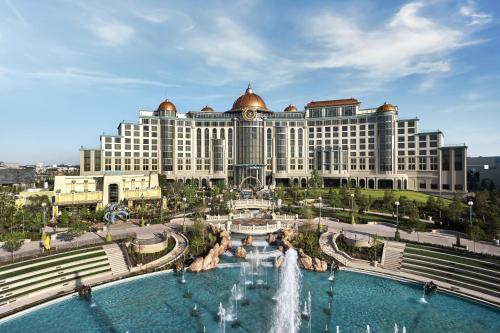This Orlando property offers free scheduled shuttle service to Universal Studios. The property features a 24-hour front desk and a fully equipped kitchen in every suite. Disney World is 7.5 mi from the property. Westgate Palace features an outdoor pool and a children's pool. A fitness center and game room are also available. Guests can also use the barbecue facilities or basketball courts. Each 2-bedroom suite at the Westgate Palace Orlando is nonsmoking and offers 3 cable TVs. Washers and dryers are also included in each suite. The Orange County Convention Center is 2.4 mi from the property. Orlando International Airport is 14 mi away. Starting March 1st 2025 the hotel will offer shuttle services to Universal Studios main transportation center to access any of their parks.