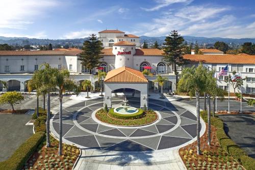"This San Mateo hotel is located just minutes from San Francisco International Airport.". It features an outdoor pool with jacuzzi and rooms provide 32-inch flat-screen cable TV. Each room at the San Mateo Marriott San Francisco Airport includes HBO, pay-per-view movies and internet access. The rooms are furnished with coffee facilities. Marriott San Mateo includes a gym and a business center. Car rental services are also available at the hotel. The Golden Gate Bridge is 26.3 miles from the San Francisco Airport Marriott San Mateo. Downtown San Francisco is 21.4 miles away.