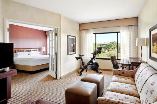A beautiful palm-lined entrance welcomes guests to this hotel near the McDowell Mountains, and steps away from TPC Scottsdale tournament golf courses. Each room is a spacious suite that has a separate bedroom and living area. Guests can enjoy flavorful cuisine at Agave Bar & Grill for breakfast, lunch and dinner. Indoor, bar and patio seating are available. The patio has west views of the Champions Course at TPC Scottsdale. Scottsdale Marriott at McDowell Mountains has a shuttle that takes guests within a 5-mile radius, this includes shopping mecca Kierland Commons and Scottsdale Quarter.